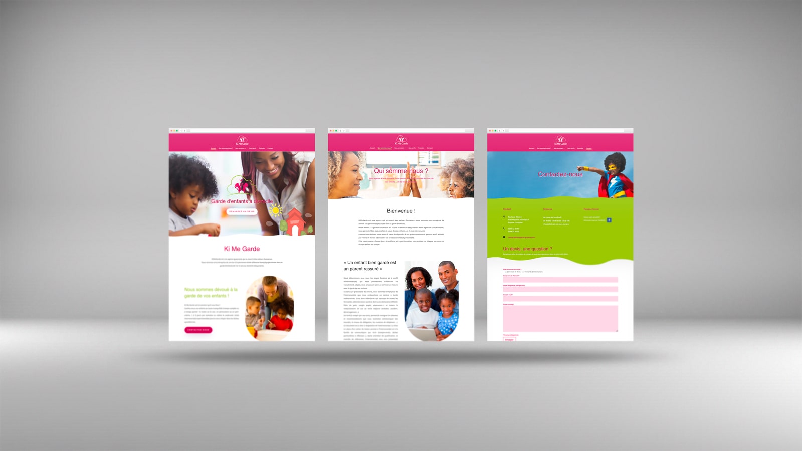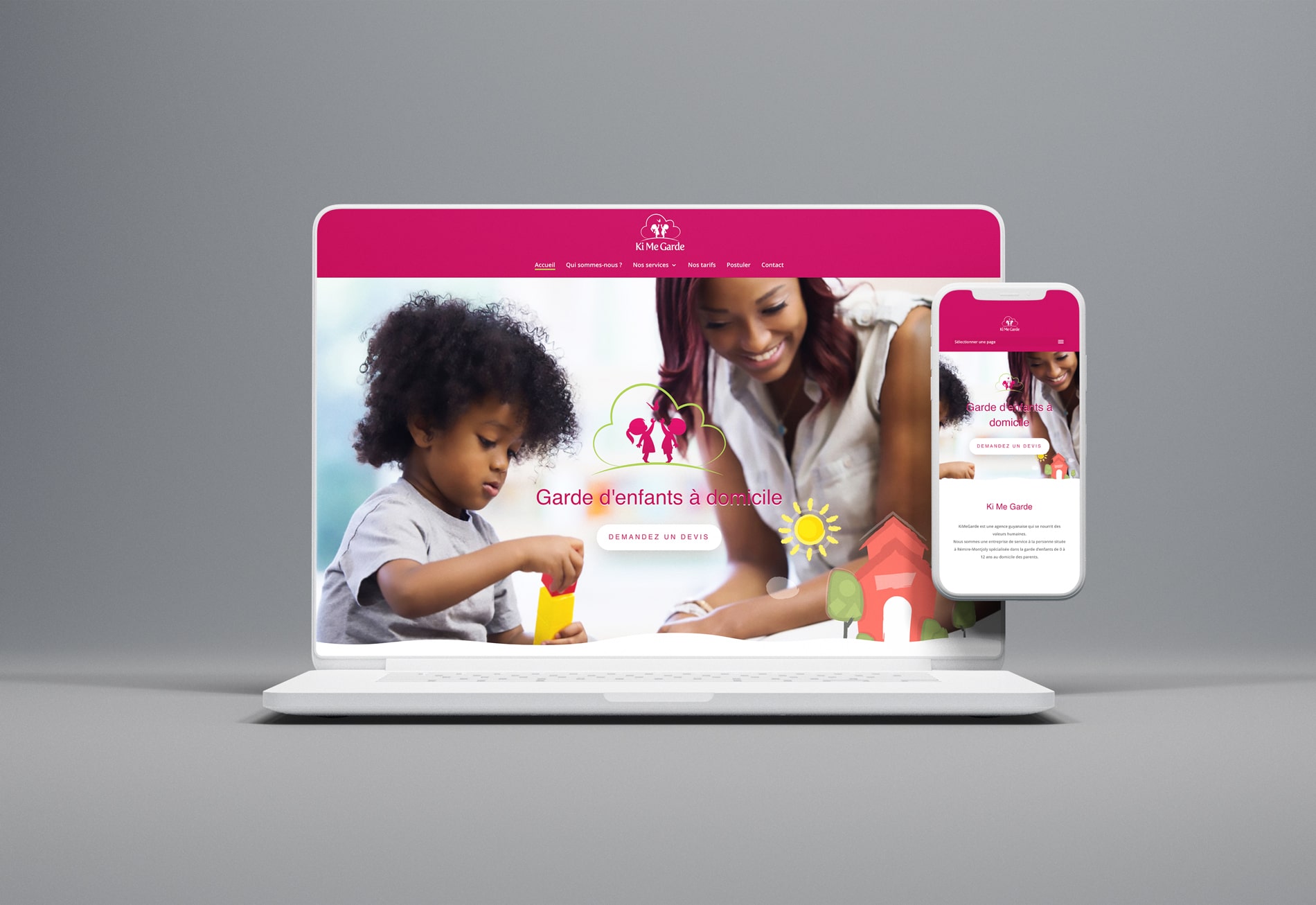 Création d’un site web moderne, facile à naviguer, mettant en avant les services de garde d’enfants et les valeurs de l’agence.